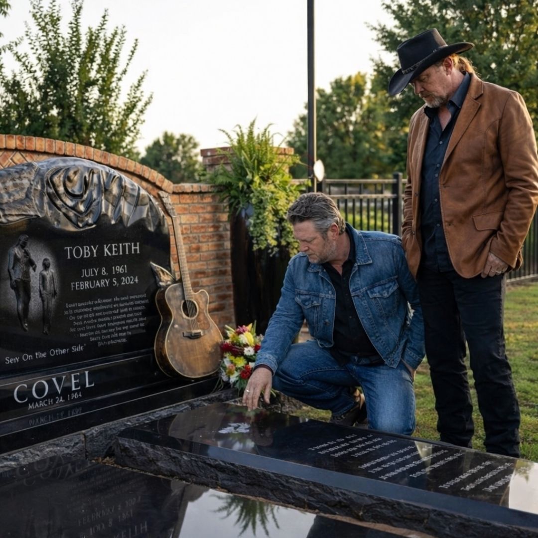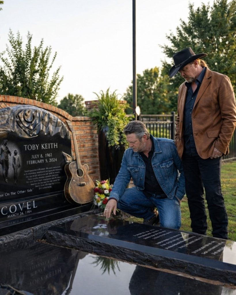 On the anniversary of the passing of Toby Keith, the town of Norman, Oklahoma carried the same quiet reverence it often does when fans come to remember one of the state’s most beloved voices. There were no spotlights that evening, no concert announcements. Just a familiar presence arriving quietly — Blake Shelton, joined by longtime friend Trace Adkins.