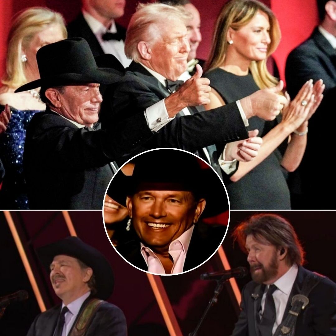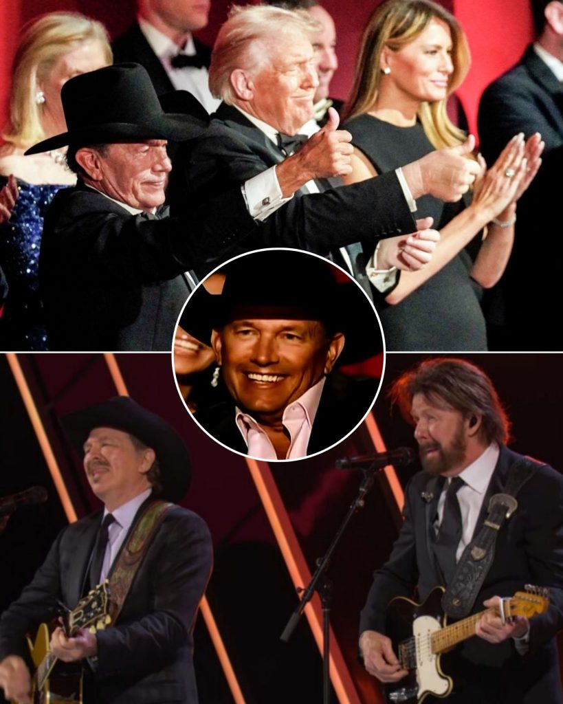 Country duo Brooks & Dunn kicked off the tribute to Strait by performing “Amarillo By Morning.” Strait appeared misty-eyed as he listened to them sing.