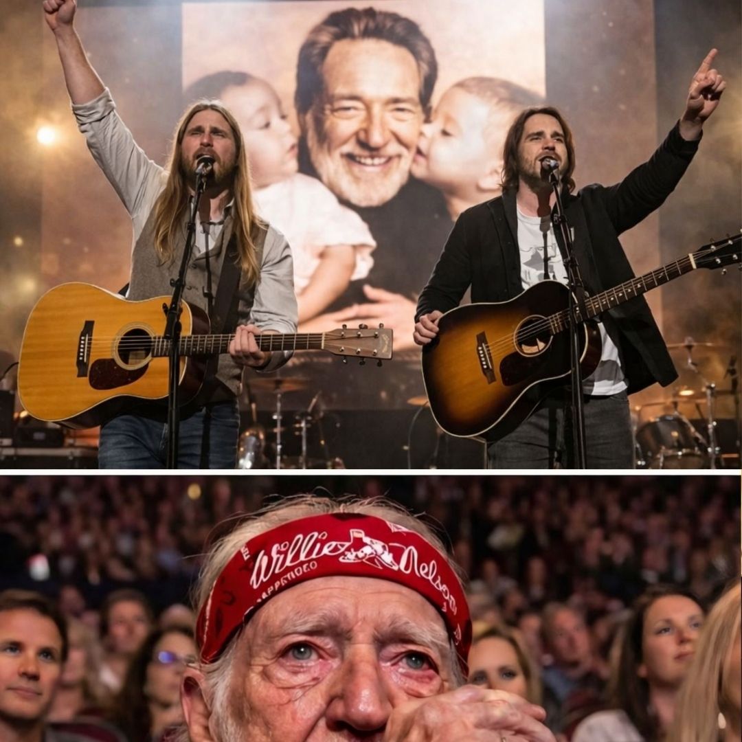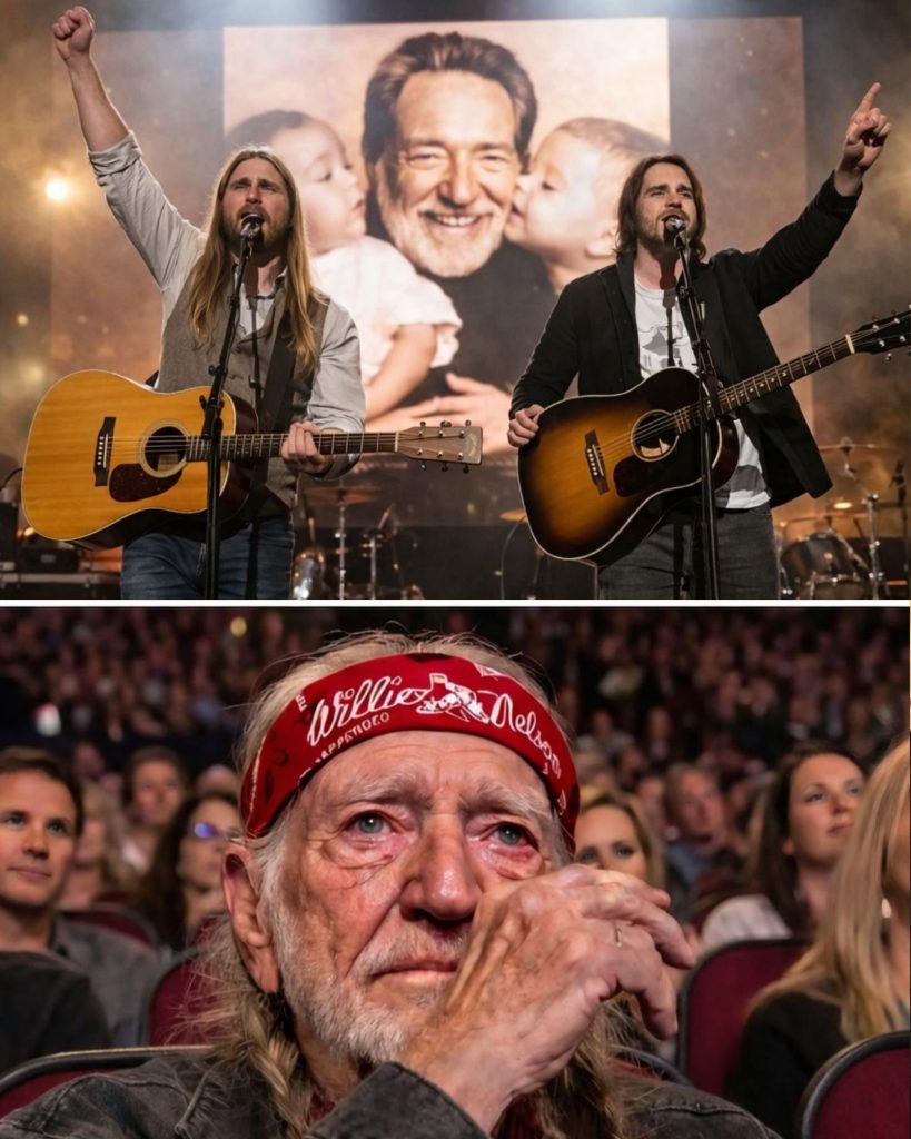 It wasn’t just that the song felt familiar. It was the way Lukas Nelson and Micah Nelson delivered it—careful, steady, unhurried. Like they weren’t performing for a crowd as much as they were offering something back to the person who taught them how to listen in the first place.